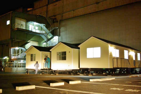 福利厚生施設として、工場の敷地内に3台設置致しました。その中の1台は、大人8人用の大きな湯船、シャワーブース、脱衣所付のお風呂専用トレーラーハウスです。