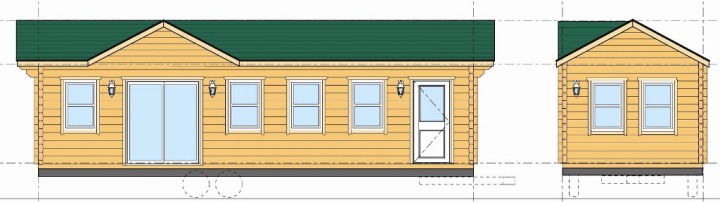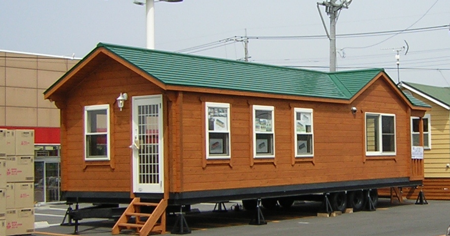 モービルホームとしては異例のモデルで、北米や北欧からのログを活用した自然派向けの本格的な作りです。